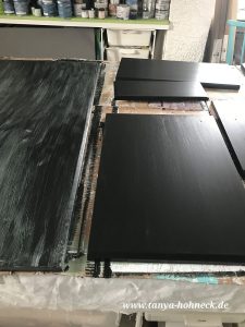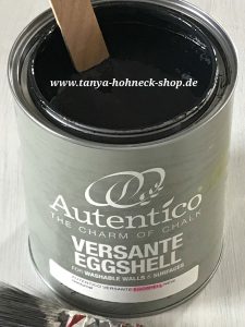 Meine Freundin wählte den Farbton ‚Nocturnal‚ von Autentico Versante in Eggshell (leicht glänzend) aus. Ihr findet bei mir im Tanya Hohneck Atelier & Shop eine riesige Auswahl an Farbtönen von Autentico chalk paint. Wenn ihr unsicher seid, bestellt euch zunächst die Farbkarte (darauf sind etwa 160 Farbtonabbildungen).