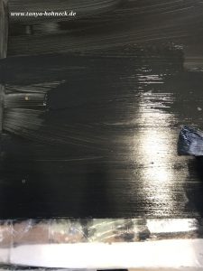 - Tipp: die Fläche vor der erneuten Farbaufnahme erneut ganz ohne Druck überrollen, damit die Fahrspuren verschwinden. Ihr dürft ruhig auch quer und vertikal rollen.